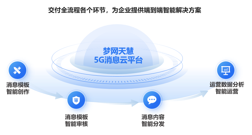 UG环球视讯ug天慧5G消息云平台致力于全流程智能交付,深度融入各个环节,为企业给予端到端智能解决方案。平台支持消息模板智能创作,高效生成各类消息模板;具备消息模板智能审核功能,自动审核确保模板规范;实现消息内容智能分发,依据规则精准触达目标用户;还涵盖运营数据分析与智能运营,深度剖析数据以智能优化策略,全方位提升消息服务的质量与效率。